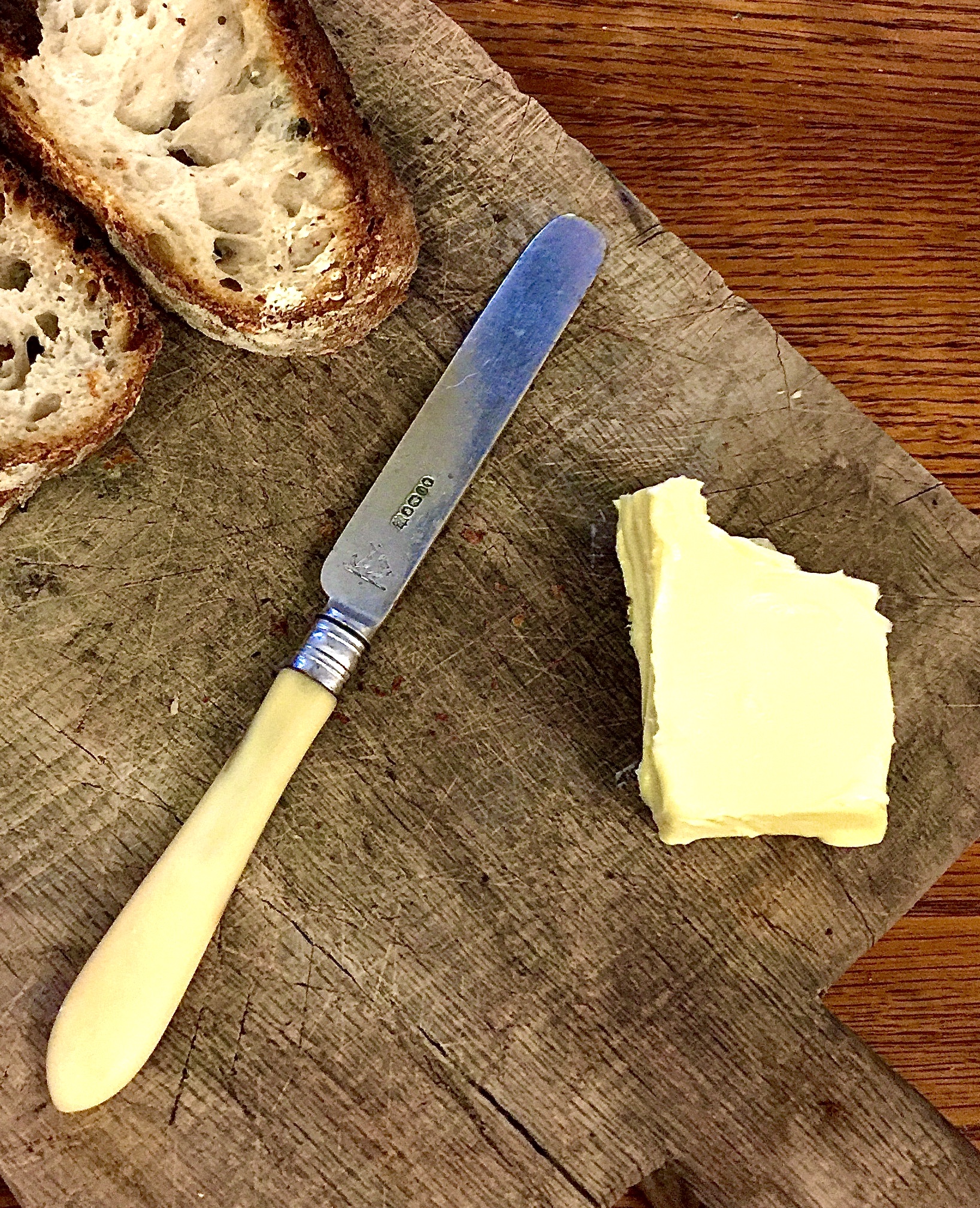 So, historically, the majority of butter would have been ‘cultured’ which is fermented to some degree and gives a delicious, individual flavour. This also allowed cream from several days’ milking to be used at once, by which time earlier milk would have fermented slightly. Also, butter would have been heavily salted to help preserve it in the days before refrigeration. Butter would also be regularly ‘washed’ and re-salted to keep it fresh. The British were well known in the medieval period for their love of butter on vegetables, something which I’m rather keen on today, or vegetables with their butter as is more often the case at my table.